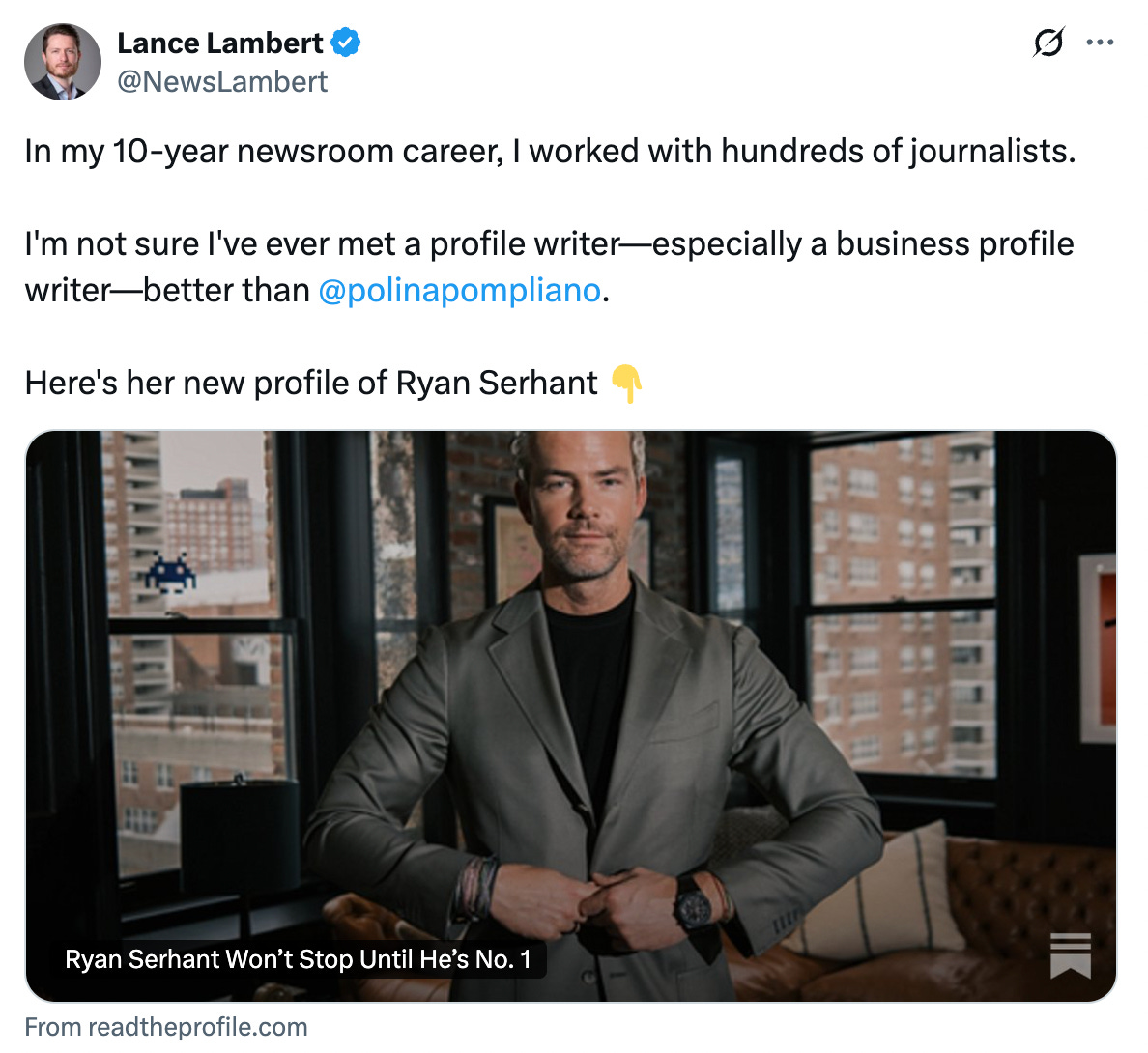 The Profile is read by the most serious and important business leaders, investors, entrepreneurs, and journalists. With her background at FORTUNE, she’s built deep relationships in these worlds, and our audience reflects that caliber.