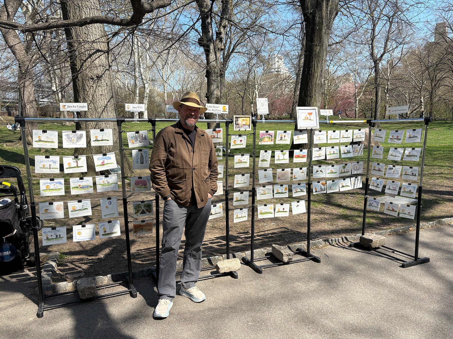 I loved Central Park as a child and visited here not long before I moved here in 2022 and met a girl near the Bethesda Fountain doing poetry for strangers. She told me a permit wasn’t required to vend there along the Mall, so after I moved here in June of 2022, I gave it a shot. And oddly enough, people responded in a way that I didn’t expect.